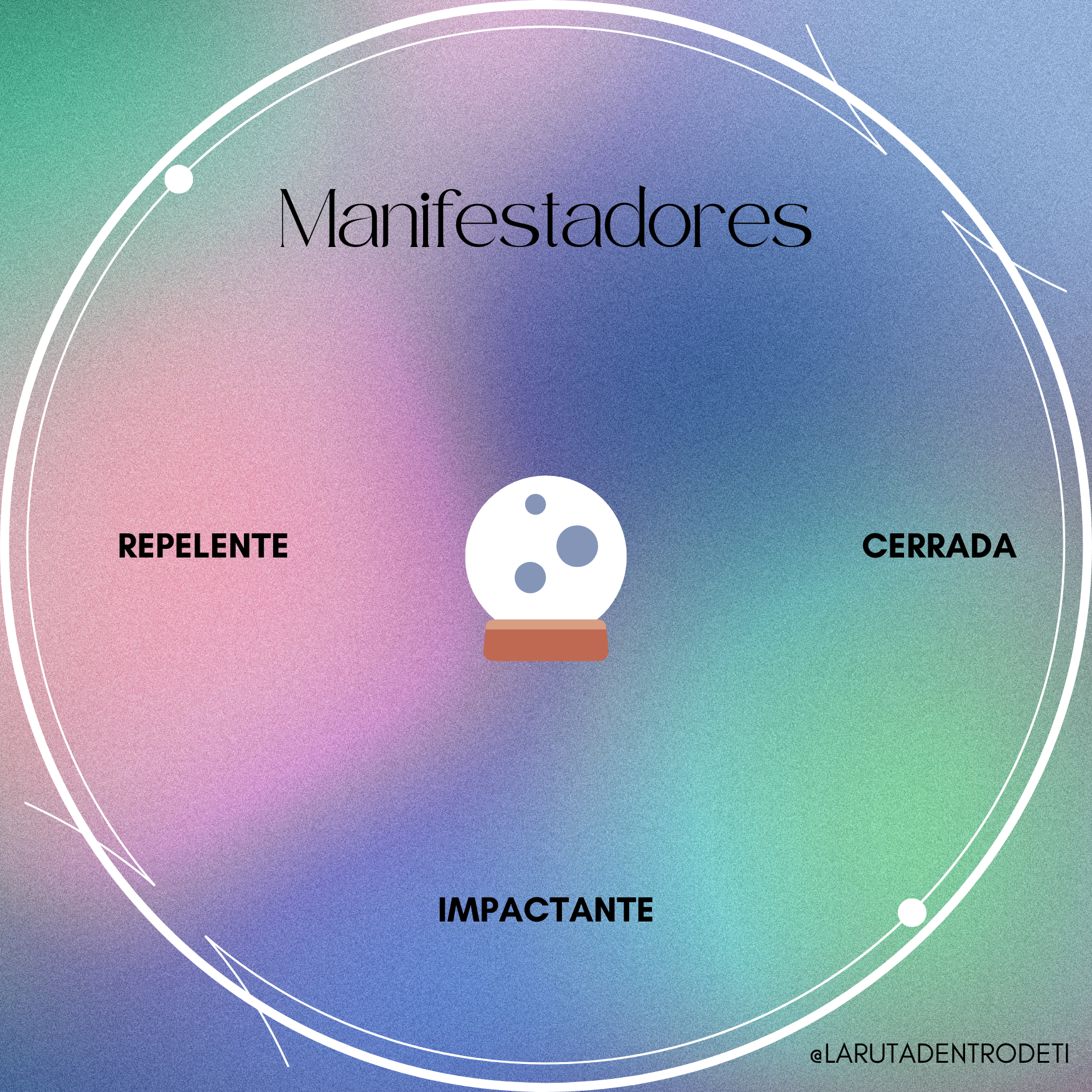 Los manifestadores tienen un aura repelente, cerrada e impactante. Para mí son como una bola de cristal que está haciendo magia y creando adentro para luego poder exteriorizar. Lo que hace y les permite concentrarse en iniciar y luego exteriorizar.