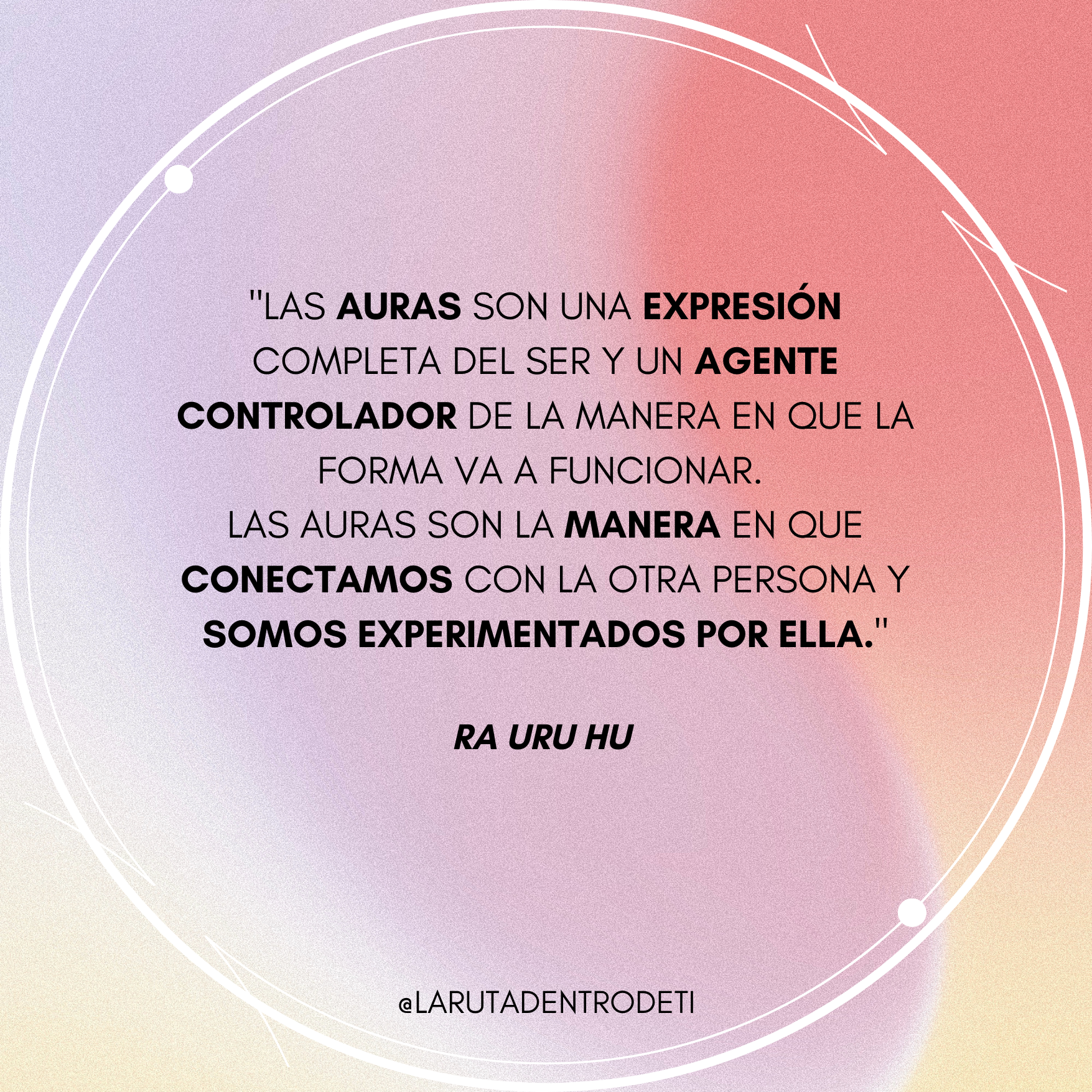 Según Ra Uru Hu, canalizador del sistema de Diseño Humano: Las auras son una expresión completa del ser y un agente controlador de la manera en que la forma va a funcionar. Las auras son la manera en que conectamos con la otra persona y somos experimentados por ella.«