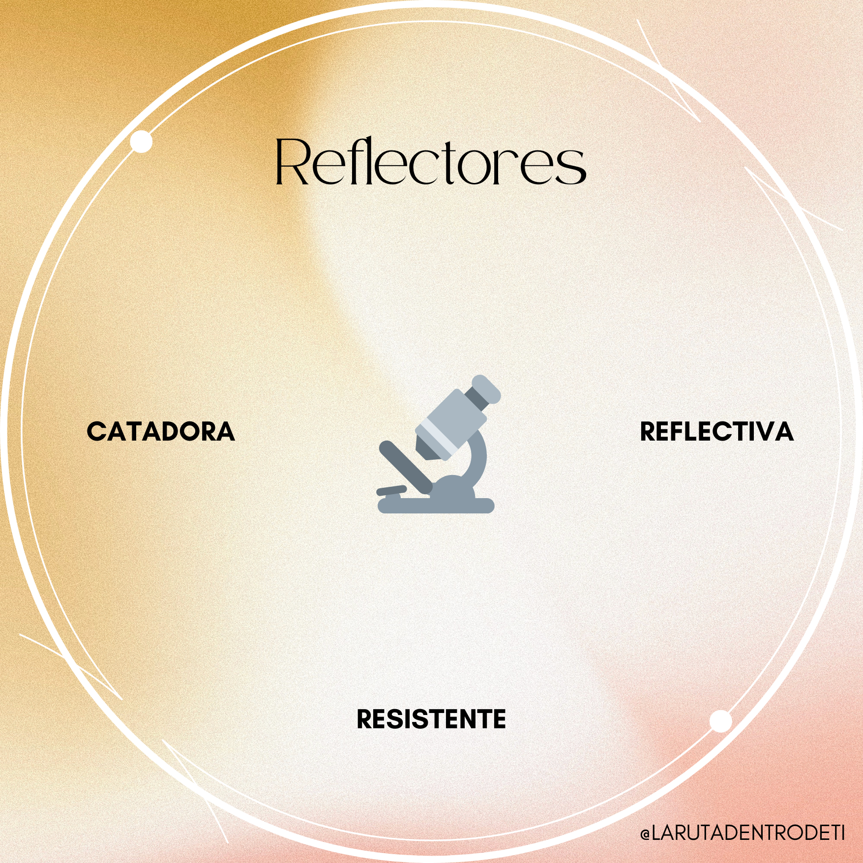Los reflectores tienen un aura catadora, reflectiva y resistente. Para mí son como un microscopio que está analizando y probando muestras (en este caso auras) y luego las va soltando / cambiando, tienen una capa de resistencia que funciona como el teflón, lo que crea una especie de membrana de protección, les permite al otro verse.